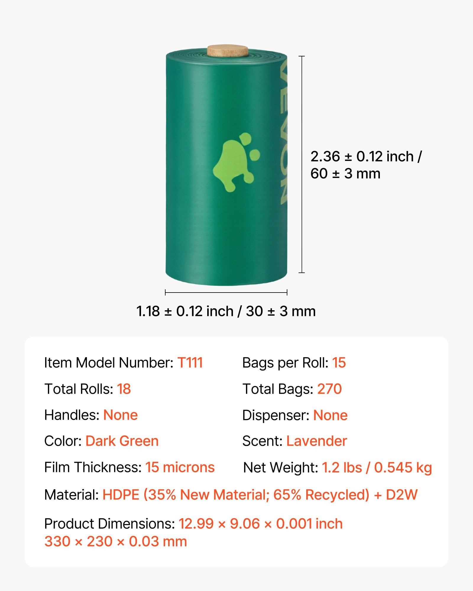 Poop Bags Refill Rolls 270PCS/ 18 rolls Lavender Scented Biodegradable